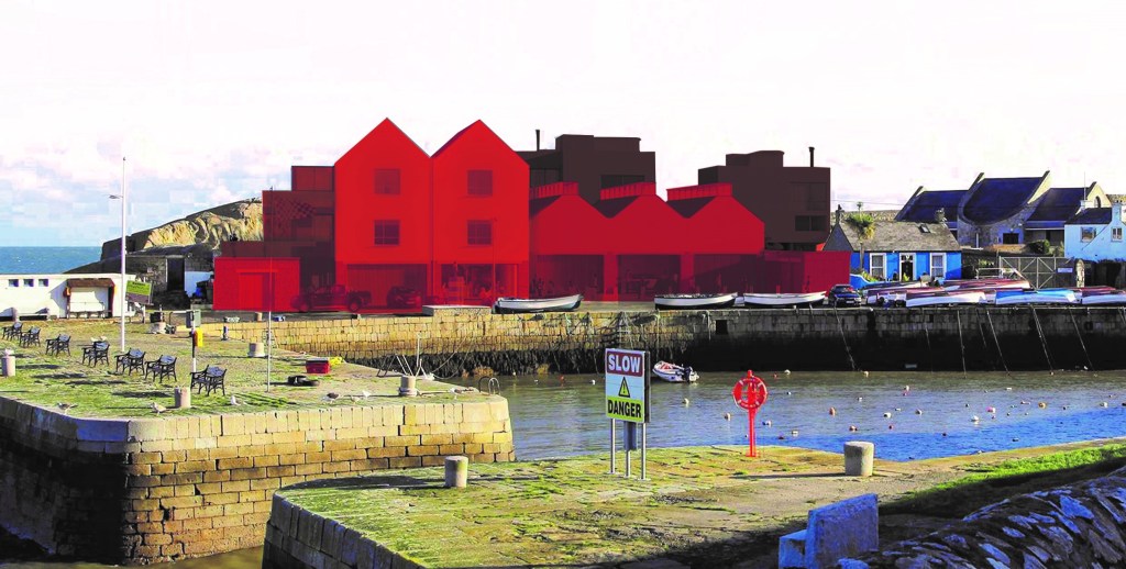 - The proposed residences are out of scale with the adjacent small buildings in the harbour. This relates to both the height and the bulk. The design and height of the quayside apartment block is too dominant. The three houses behind are each over 400 square metres of floor area. With all three buildings bunched together, they will present as a single large mass. The development will change the character of the harbour and block views of the rocky landscape and seascape.